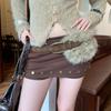 Пояс из ПУ кожи с мехом, Пушистый пояс из искусственного меха, Плюшевый ремень, Винтажный пояс Y2K, Повседневный