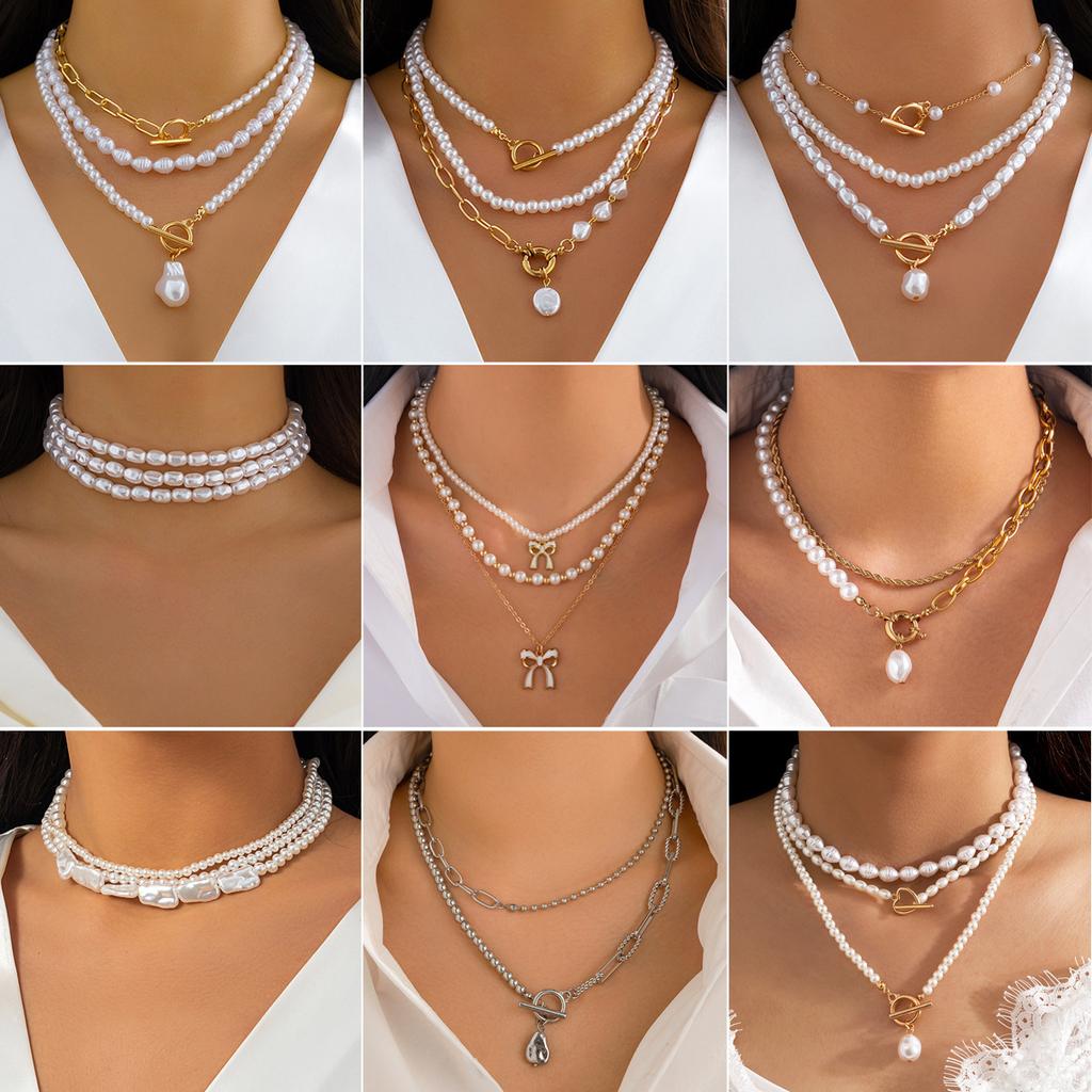 Металлическая цепочка в стиле ретро, повседневная цепочка на ключицу, простое ожерелье-чокер с имитацией жемчуга
