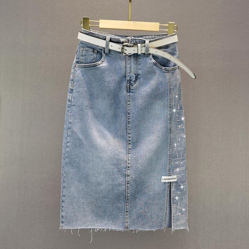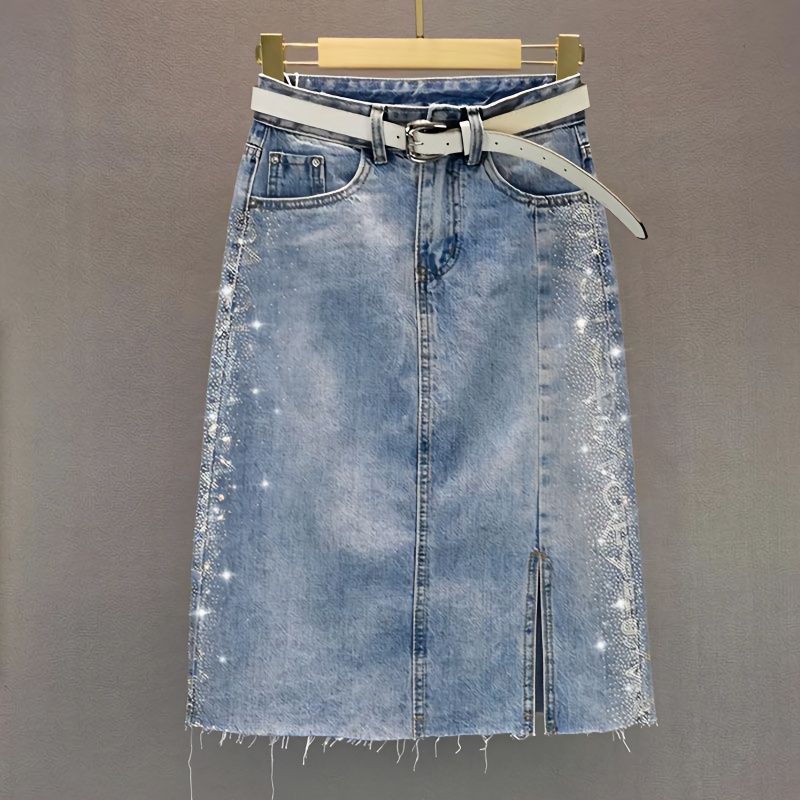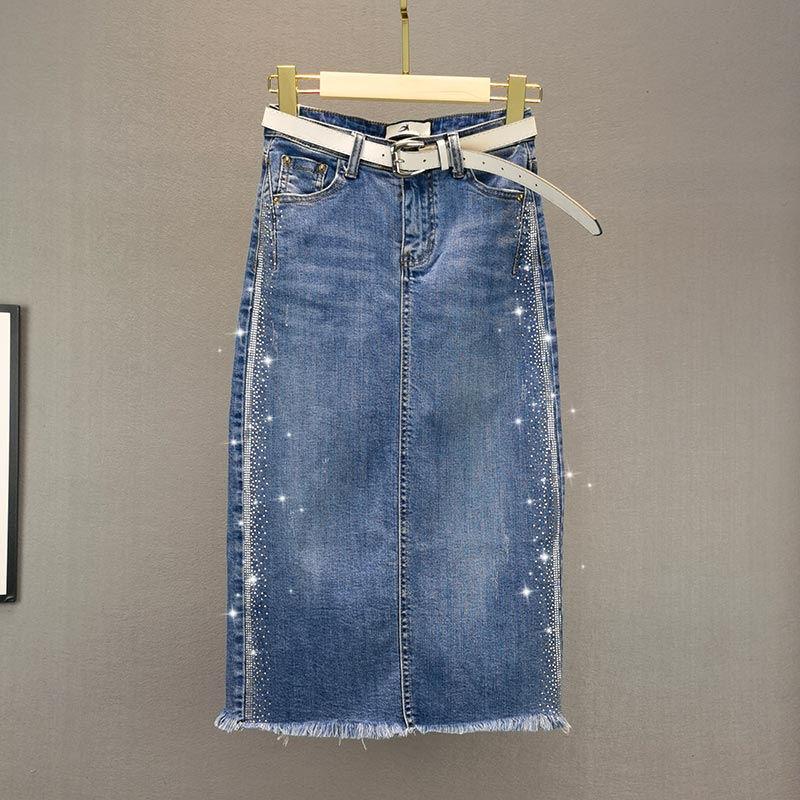 Летняя модная юбка из джинсовой юбки со стразами и облегающим дизайном