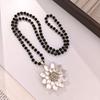 Хрустальный цветок двойная подвеска цепочка для свитера цепочка из черных бусин длинное ожерелье модное в стиле легкой роскоши женские универсальные аксессуары для одежды