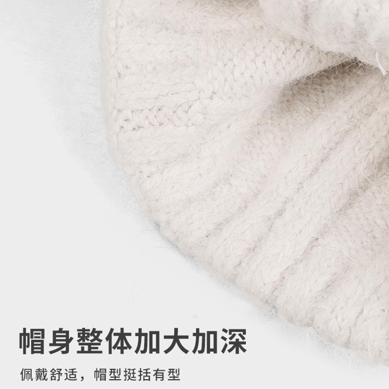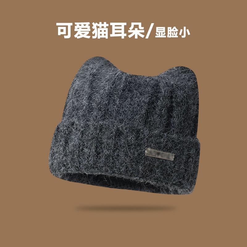 Шапка с кошачьими ушками Женская шерстяная шапка Большой обхват головы Милая теплая шапка от холода Маленькое лицо Защита ушей от холода Вязаная шапка