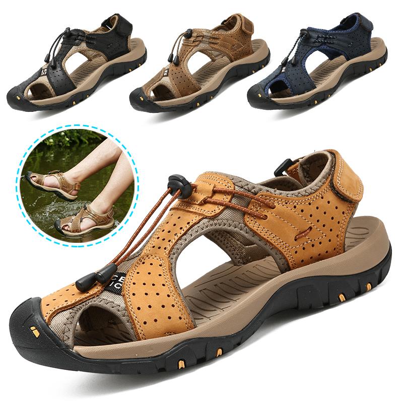 Летние мужские кожаные сандалии, походная уличная пляжная обувь, нескользящие мягкие мужские повседневные спортивные сандалии, забродные кроссовки на платформе