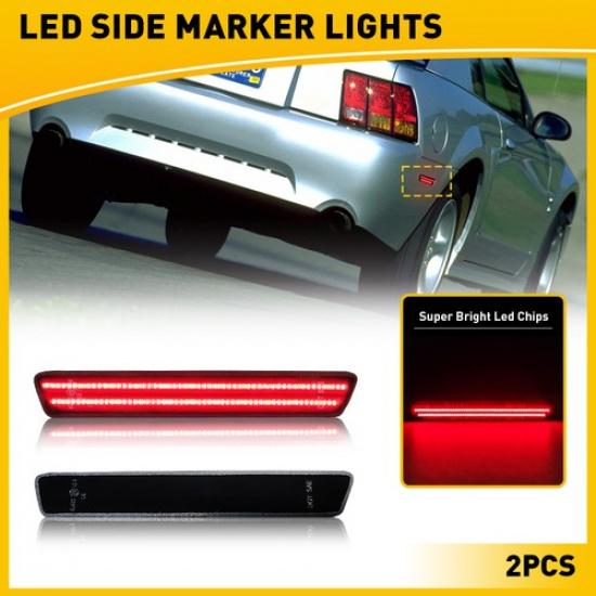 2pcs Smoked Lens LED Rear Side Marker Red Light For 1999-2004 Ford Mustang