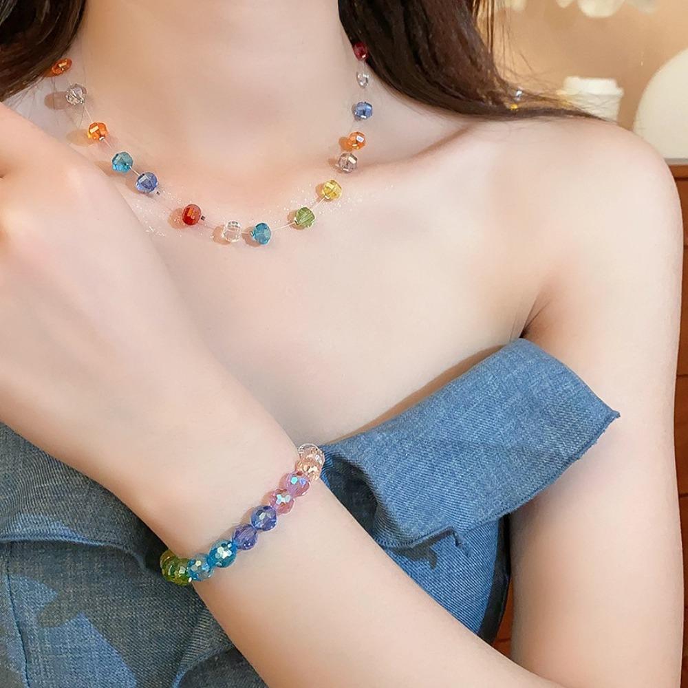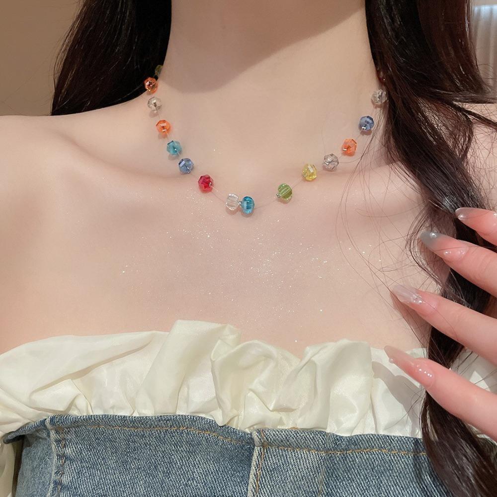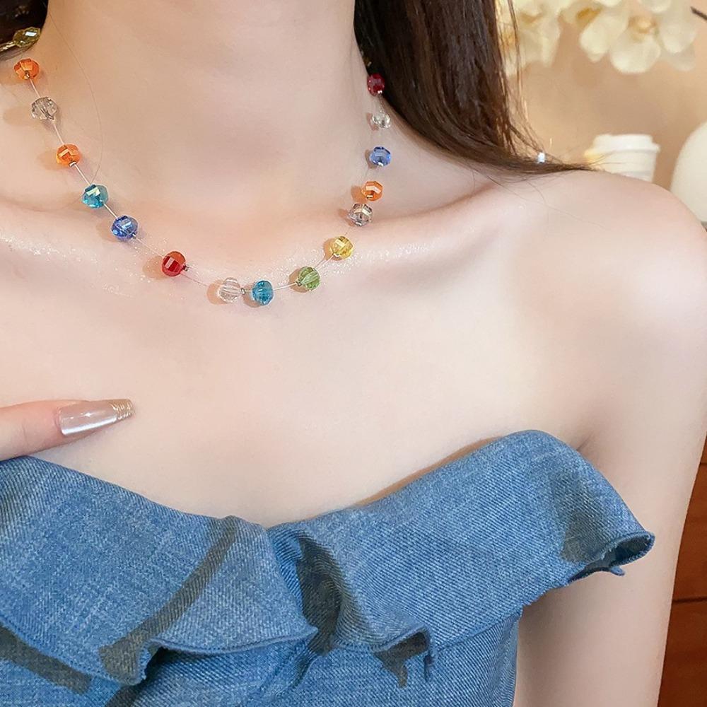 Ожерелье-чокер с радужными бусинами Цепочка на ключицу Пляжное ожерелье Свежее разноцветное ожерелье Отпуск