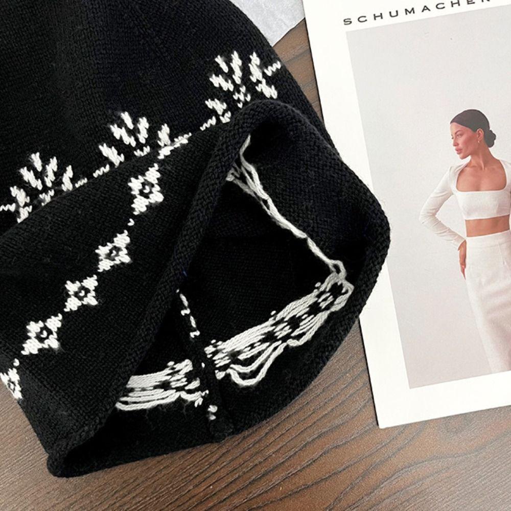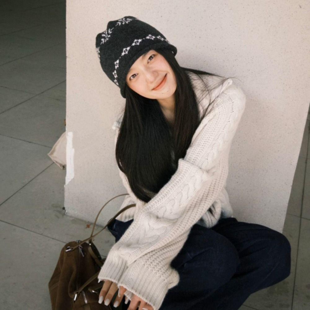 Шапка жаккардовой вязки с загнутым краем, теплая вязаная шапка с принтом, бини в стиле ретро Fair Isle, для улицы
