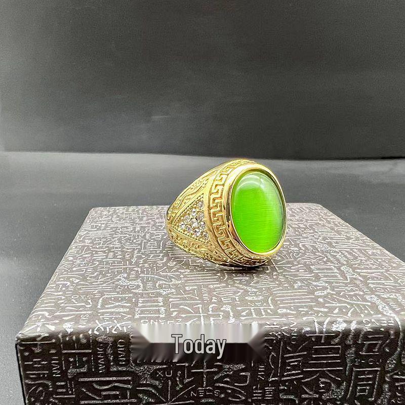 Европейско-американский хип-хоп позолоченное кольцо из титановой стали с камнем «кошачий глаз» и стразами для мужчин