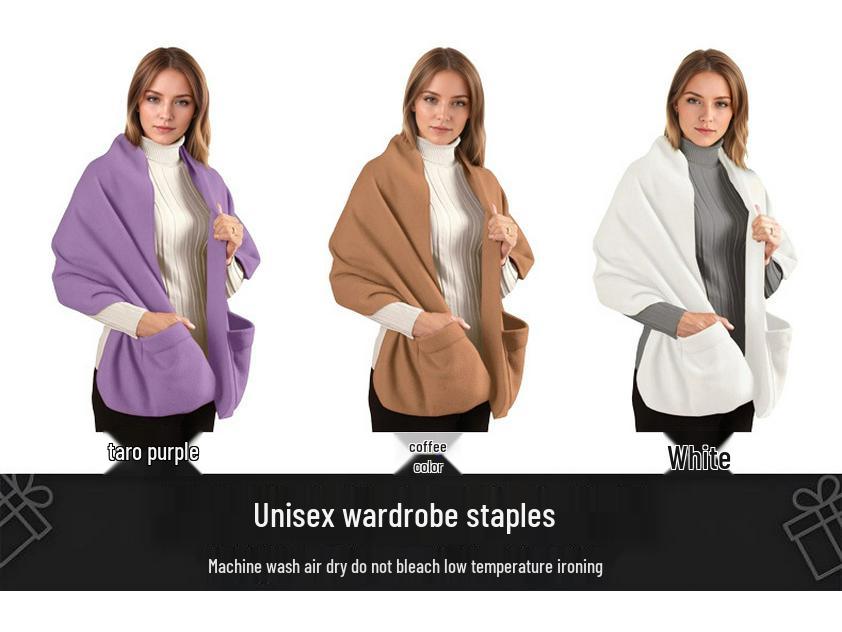 Унисекс Корейско-европейский стиль Теплый флисовый шарф-палантин с карманом - Модный осенне-зимний утеплитель для шеи плащ