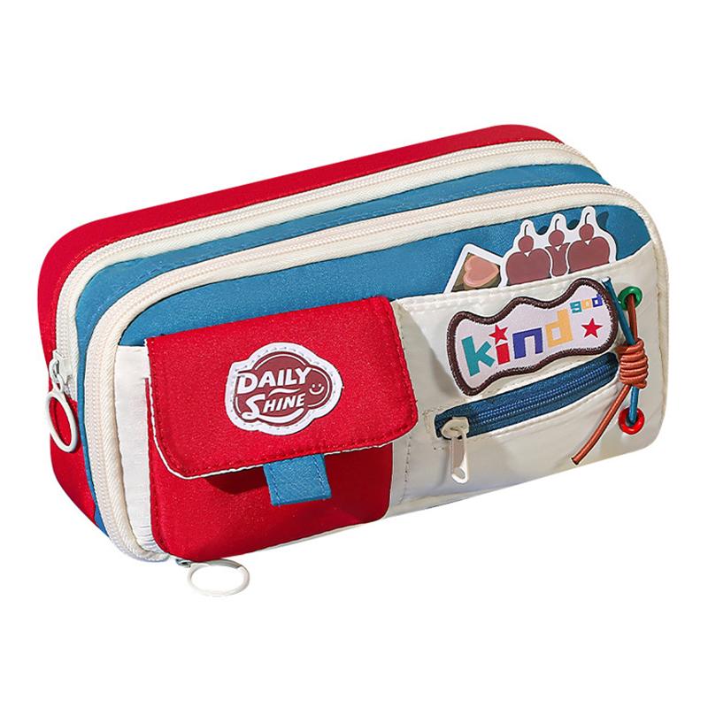 Пенал большой вместимости в винтажном американском стиле с цветными блоками - Многофункциональный органайзер для аксессуаров и принадлежностей для учебы