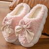 Женские хлопковые тапочки с бантом: Теплая, Толстоподошвенная, Нескользящая, Плюшевая Домашняя Обувь для Осени и Зимы