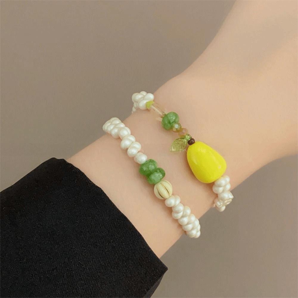 2 шт./набор Браслет из бусин «Сладкая груша» Изысканный богемный браслет на руку Фруктовый многослойный браслет Для девочек