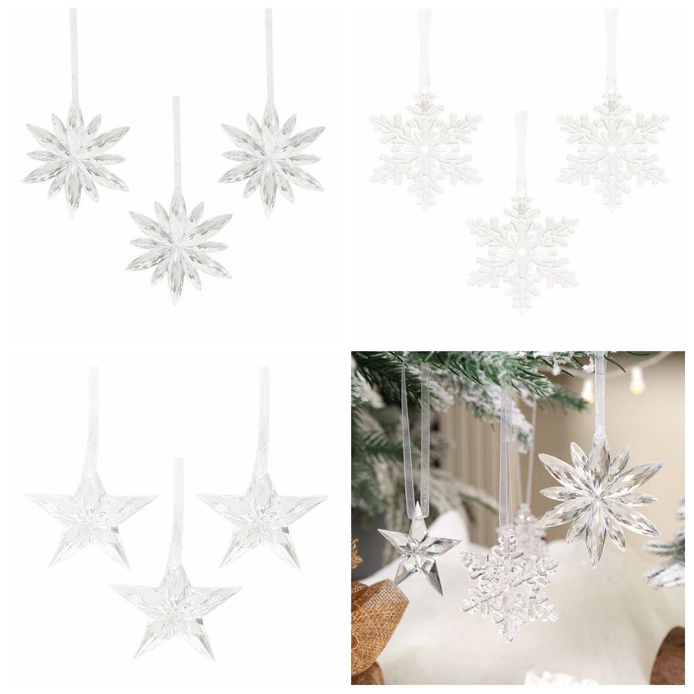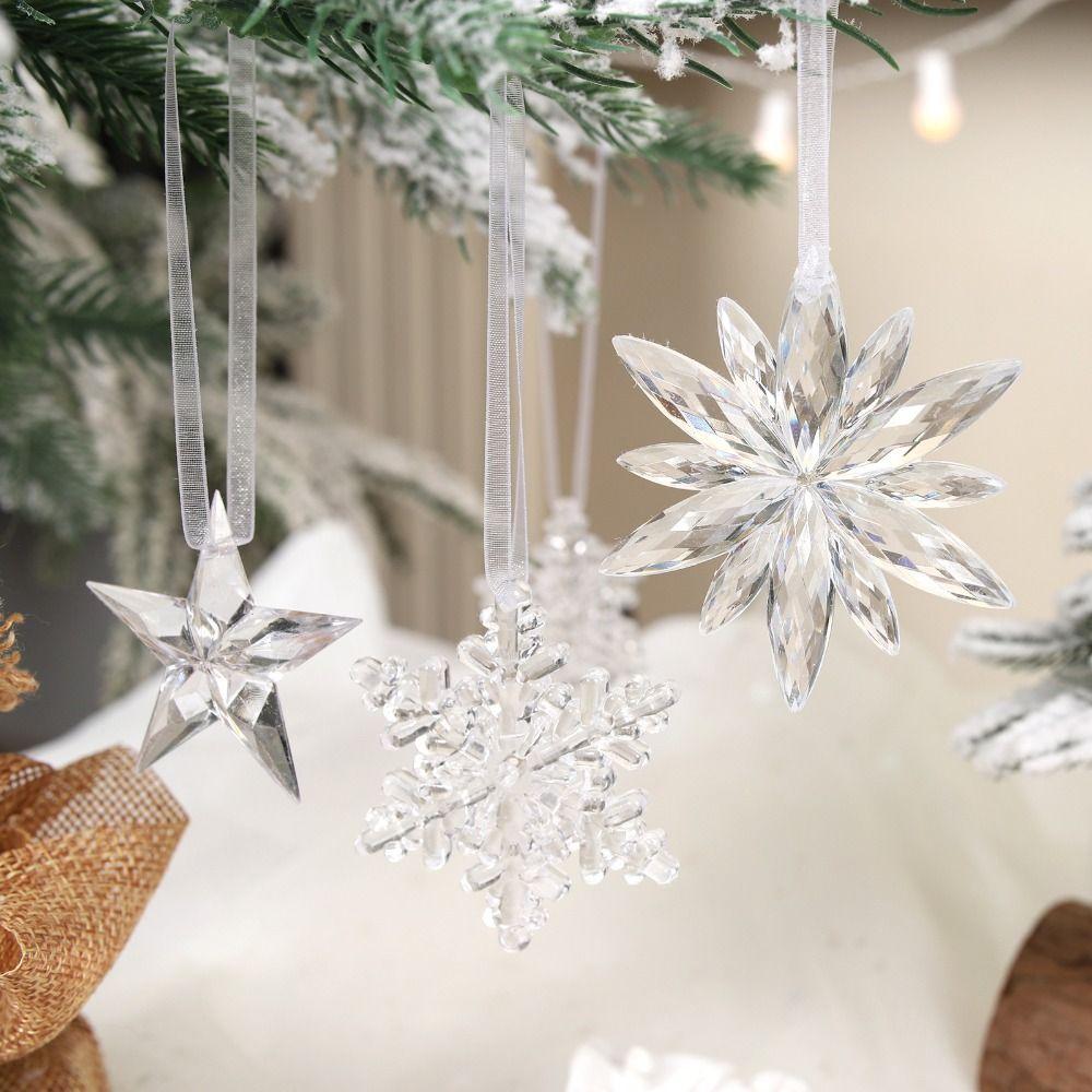 3 шт./набор Прозрачные Подвески-Снежинки из Акрила для Украшения Новогодней Елки Новый Год