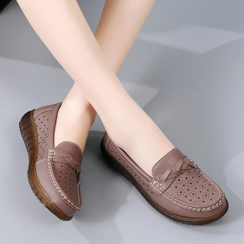 Летняя кожаная перфорированная женская обувь, Нескользящие женские туфли-горошины на мягкой подошве, Обувь для ленивых на четыре сезона, Кожаная обувь, Женская ПУ