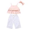 Детские топы с рюшами на бретельках для маленьких девочек, футболка + брюки + повязка на голову, комплект одежды