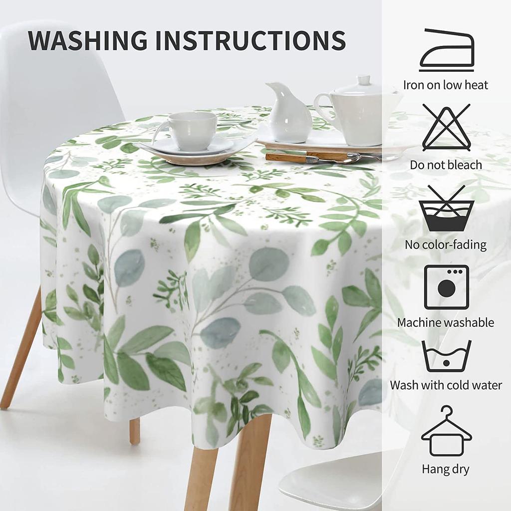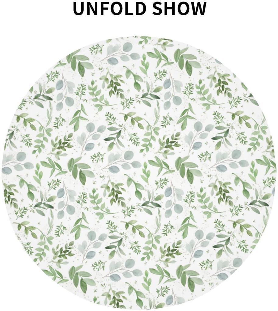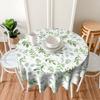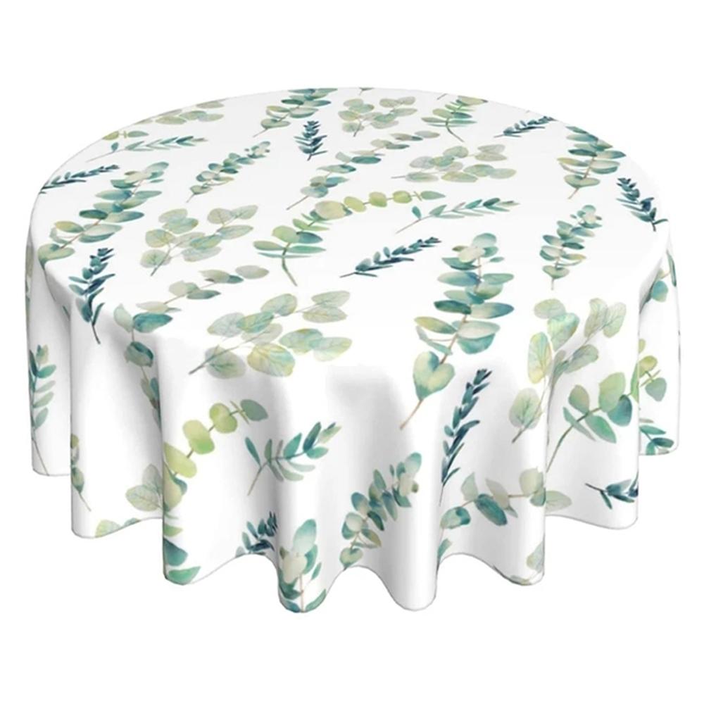 Spring Floral Teal Sage Green Tablecloth Round 60 Inch Watercolor Eucalyptus Leaf Round Table Cloth Wrinkle Resistant Washable