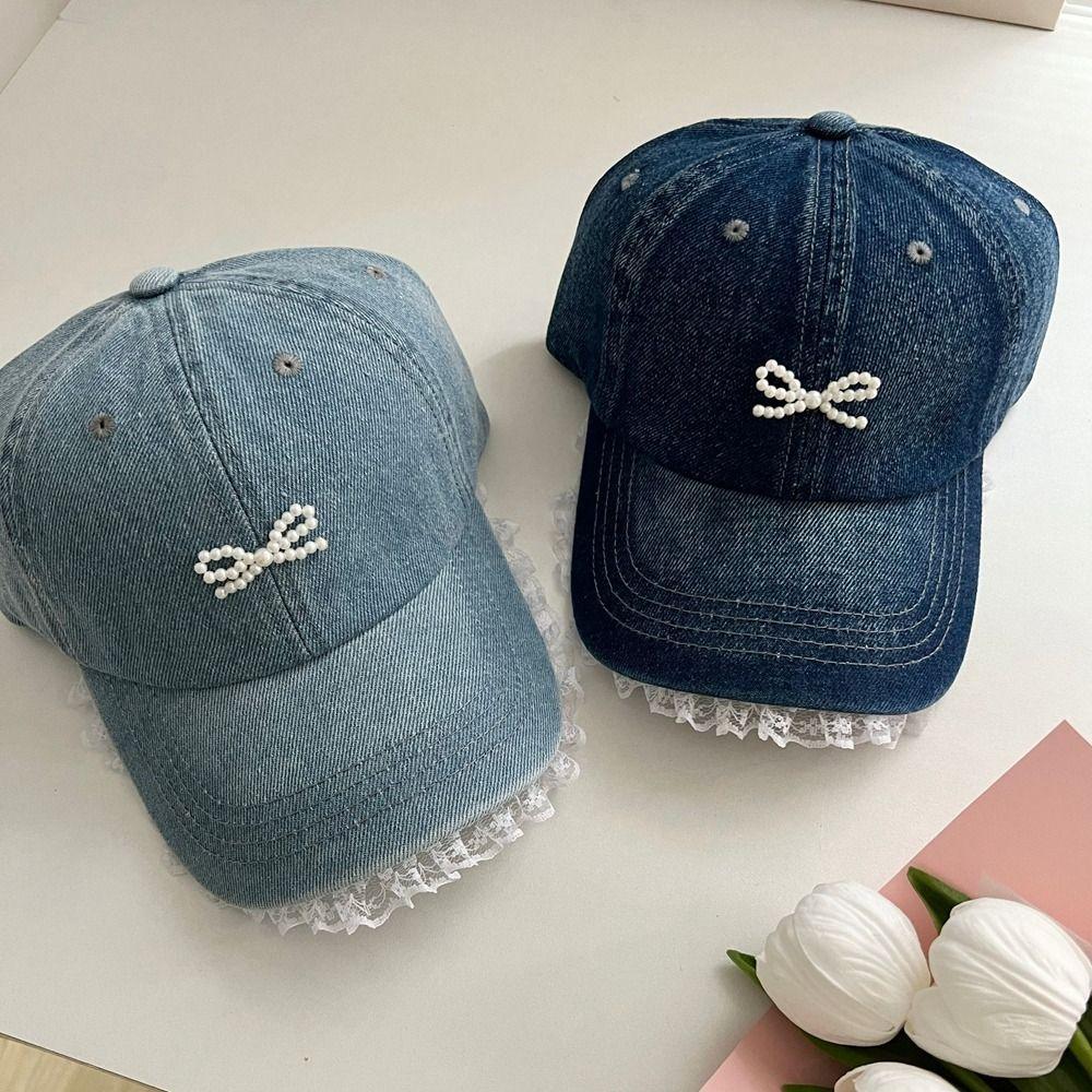 Bowknot Bowknot Baseball Hat Pearl Peaked Cap Fashion Denim Hat Girl
