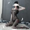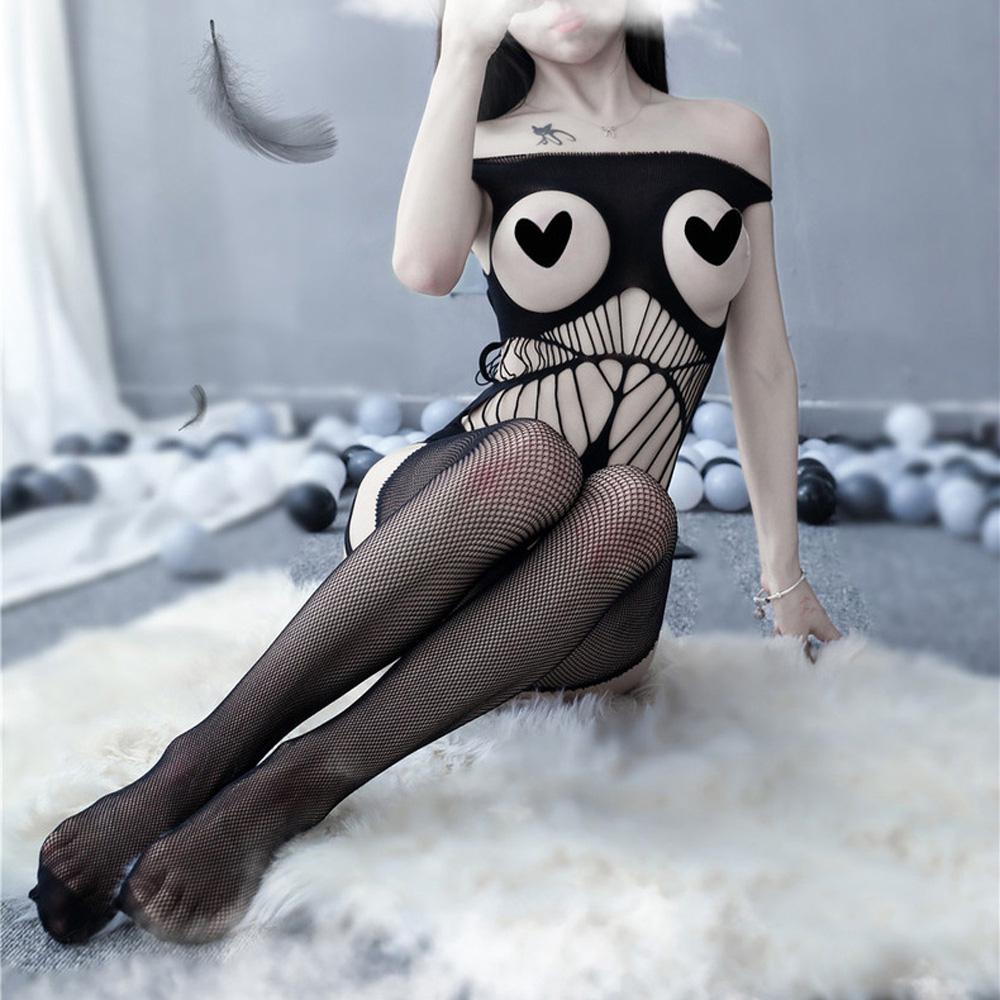 Bowknot Mesh Open Crotch Hollow Out Garter Belt Bodysuit Sleepwear Dress Hollow Stockings Pajamas