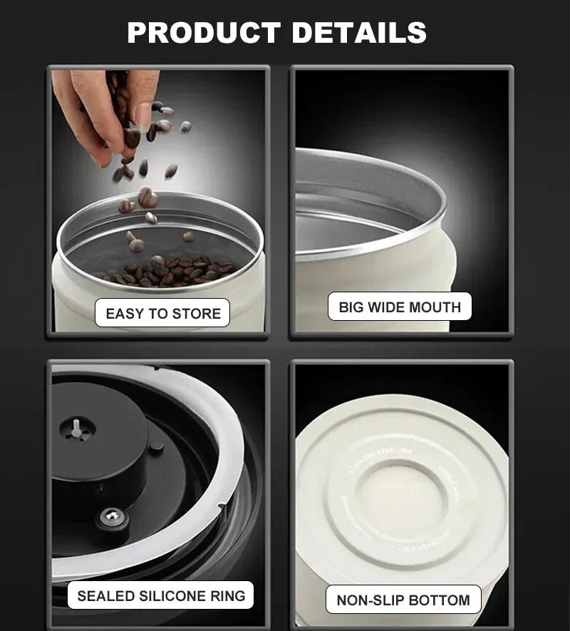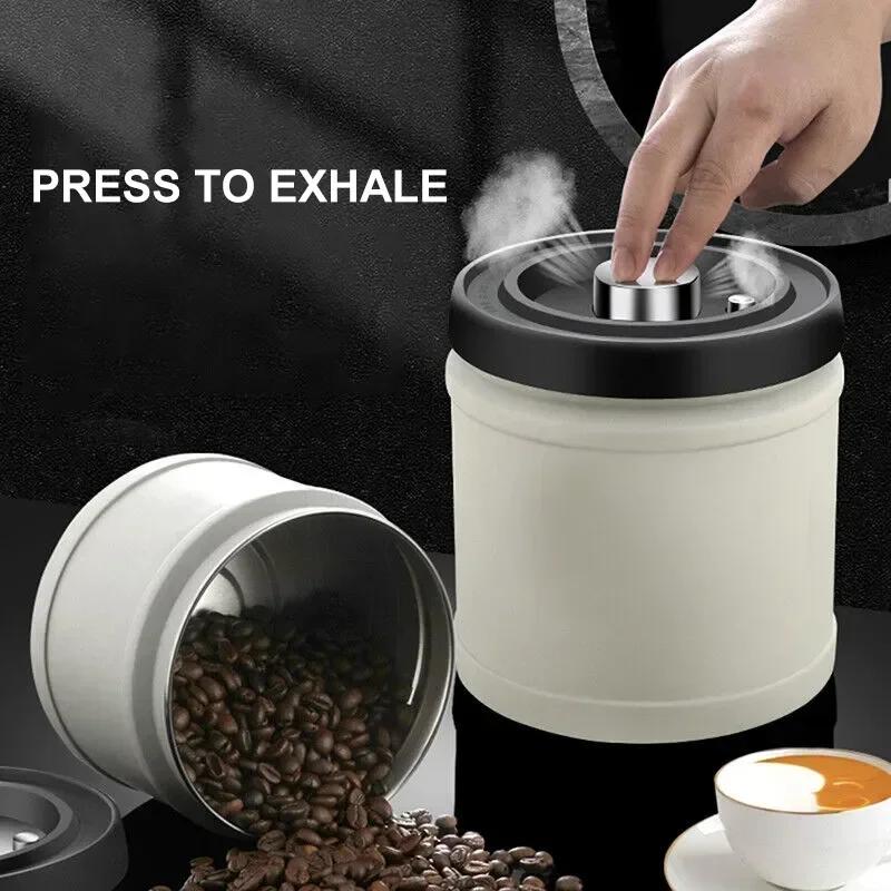 304 Stainless Steel Airtight Coffee Container Storage Canister Coffee Bean Jar Vacuum Sealed Cans food Kitchen Storage Organizer