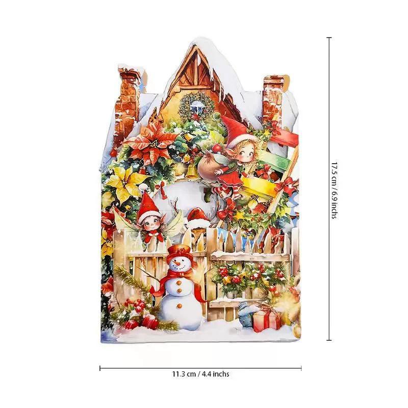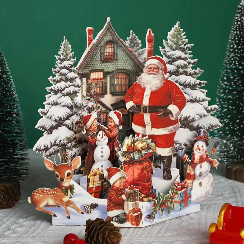 3D Рождественская открытка Сцена «Ночь перед Рождеством» с Сантой, оленями, заснеженной деревней и лунным небом Праздничная поздравительная открытка F