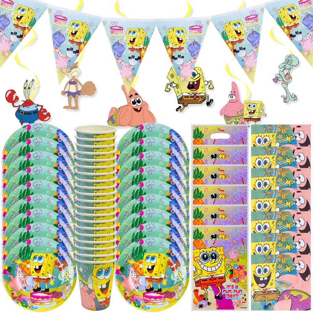 Украшение для дня рождения Губки Боба Для Детей Игрушка Воздушные Шары из Алюминиевой Фольги Латексные Мультяшная Посуда Принадлежности для Мероприятий Баннер Фон