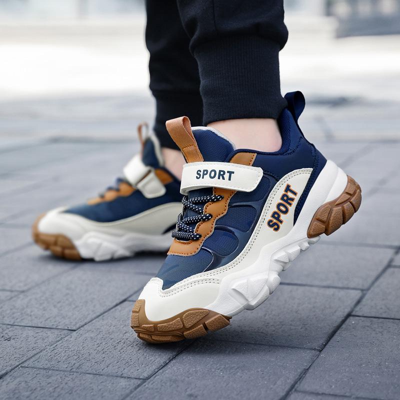 Обувь для мальчиков 29–39, осенняя водонепроницаемая детская спортивная обувь с кожаной поверхностью, уличная спортивная обувь для мальчиков для папы