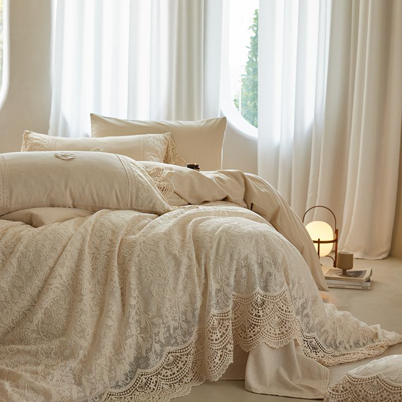 20% Лен И 80% Хлопок Винтажный Комплект Постельного Белья с Полым Кружевом, Вышивкой и Пэчворком Пододеяльник Простыня Плоская/На резинке Наволочки 4 шт