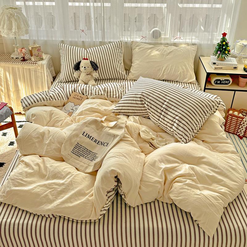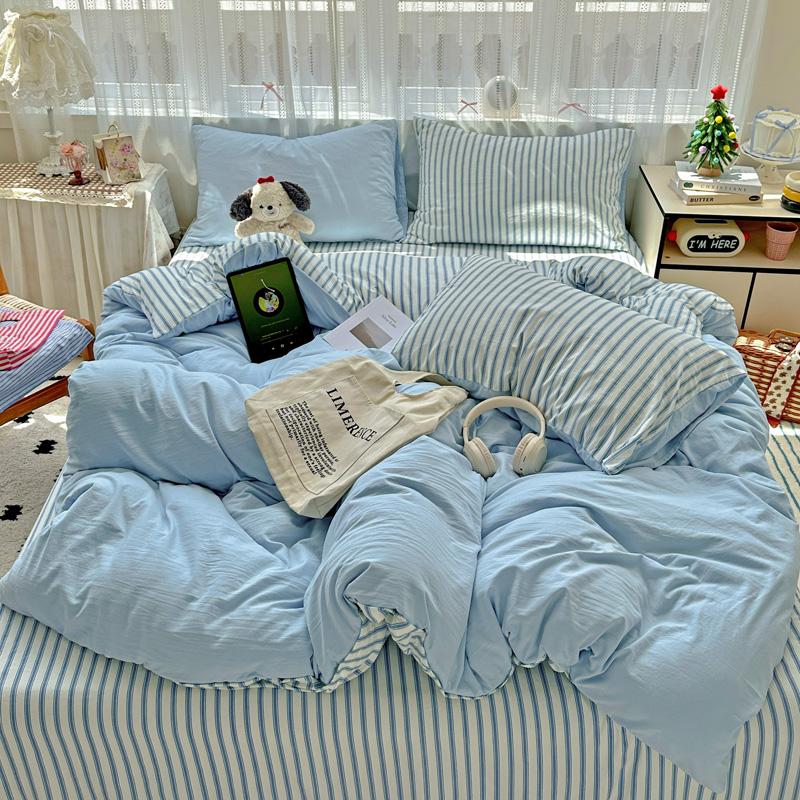 Постельное белье в полоску Ins Корейский комплект пододеяльника Комплект простыней С 2 наволочками Односпальная Двуспальная Полная Queen Size Комплект постельного белья
