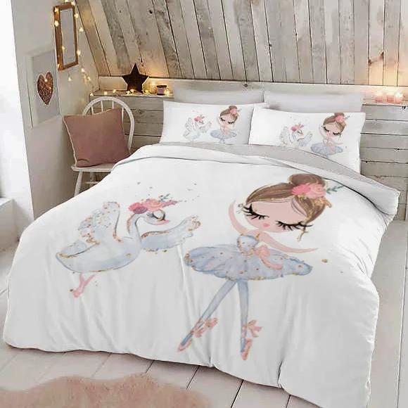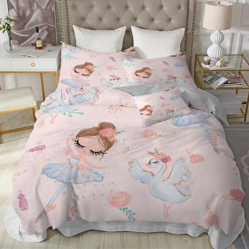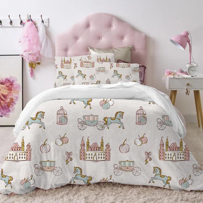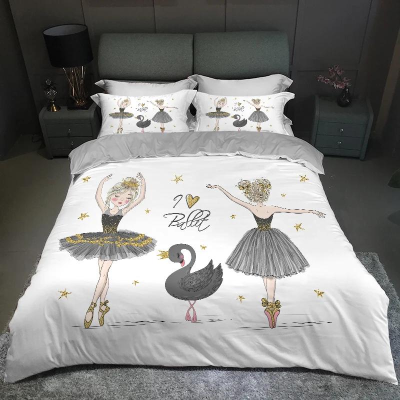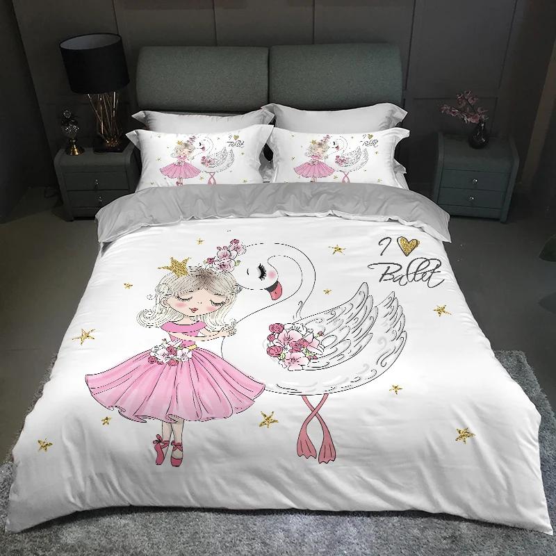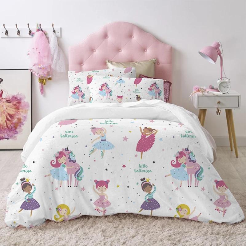 Современный милый детский постельный комплект для принцессы размера твин из микрофибры с мультяшным принтом единорога, лебедя, балерины, пододеяльник с наволочками