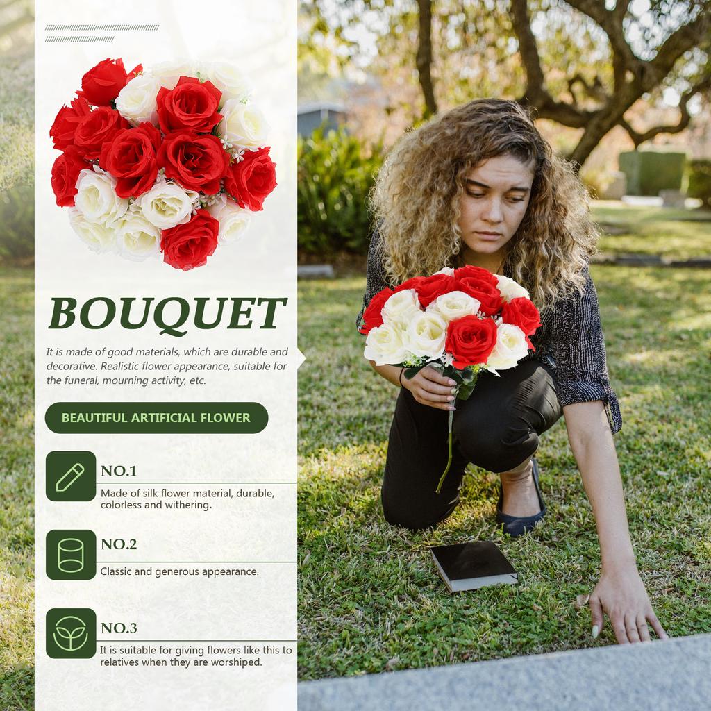 Букет Искусственных ЦветовРоза Кладбище Могила Украшения Мемориальная Искусственная Композиция Маленький Размер Премиальный Материал Практичное Использование