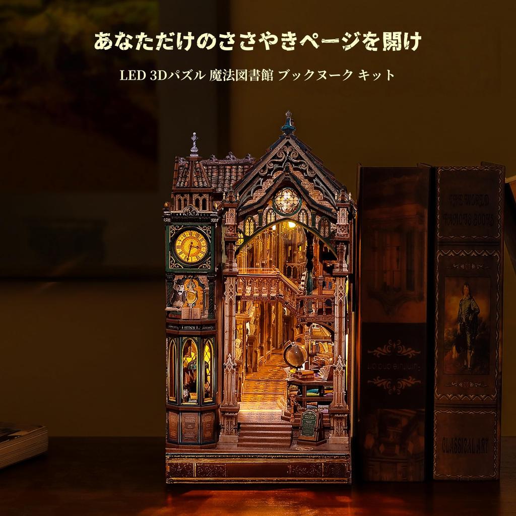 FUNPOLA 3D Деревянный Шепчущий Магический Бесконечный Книжный Уголок Расслабляющий DIY Миниатюрный Кукольный Домик со Светодиодной Книжной Полкой Рукоделие Взрослый Средний 315 Деталей Пазл,