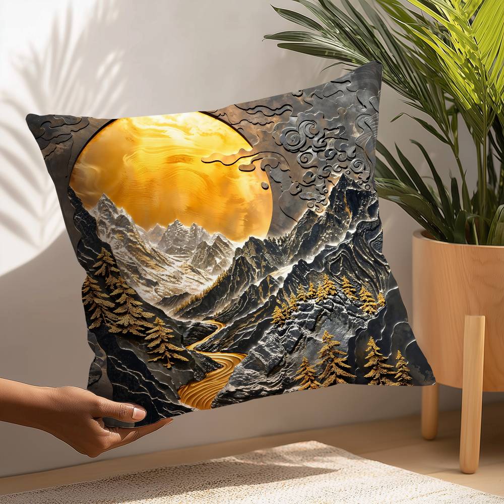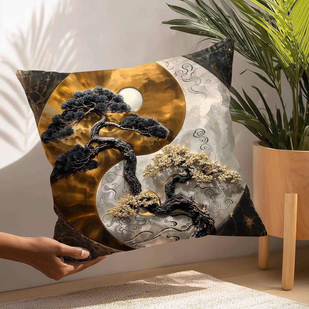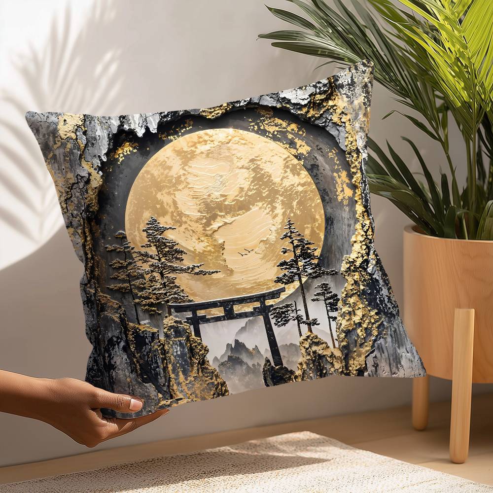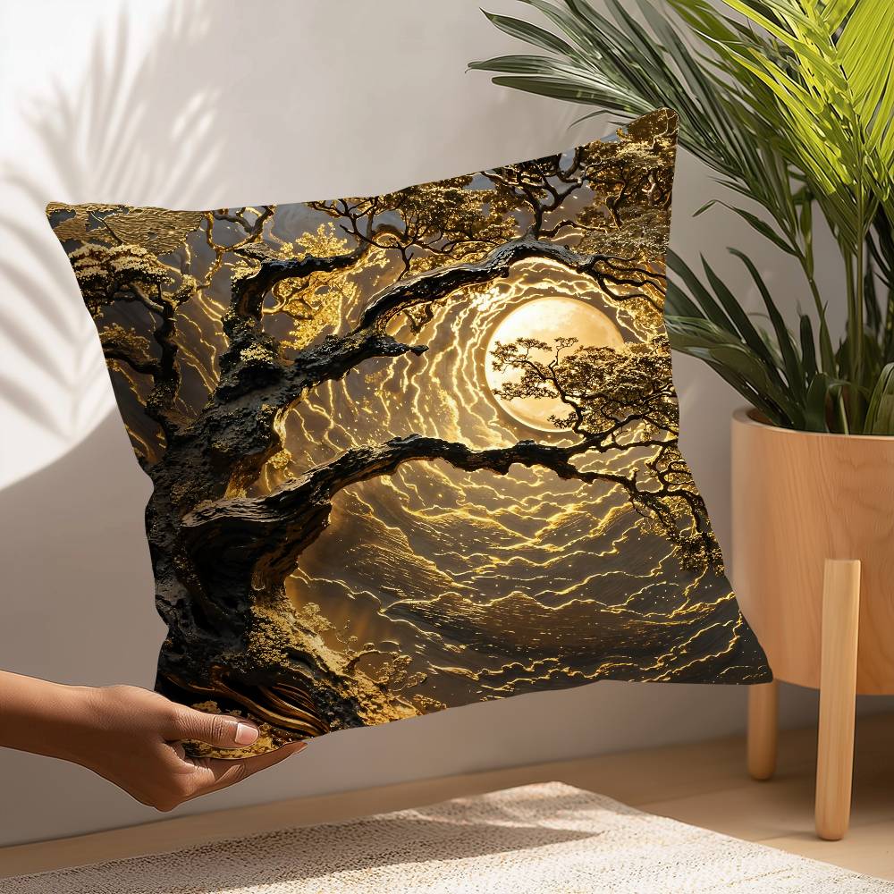 Золотое Дерево и Луна Абстрактная Картина Наволочка Декоративная для Дивана Домашний Двусторонний Принт Короткий Плюш Подушка Чехол для Подушки