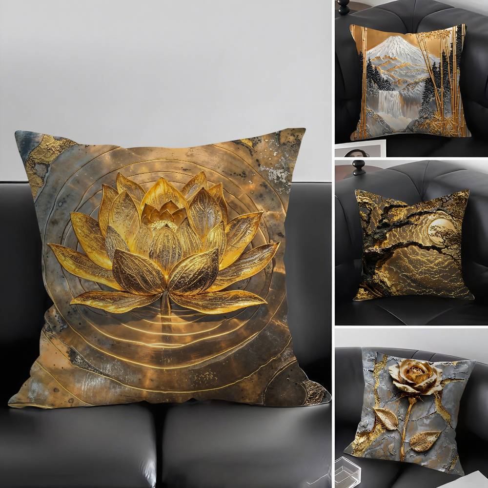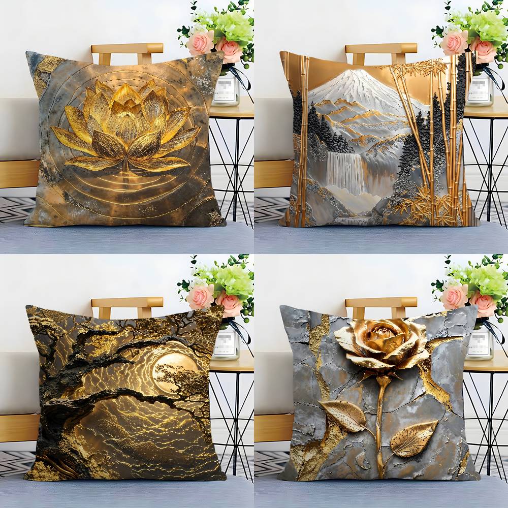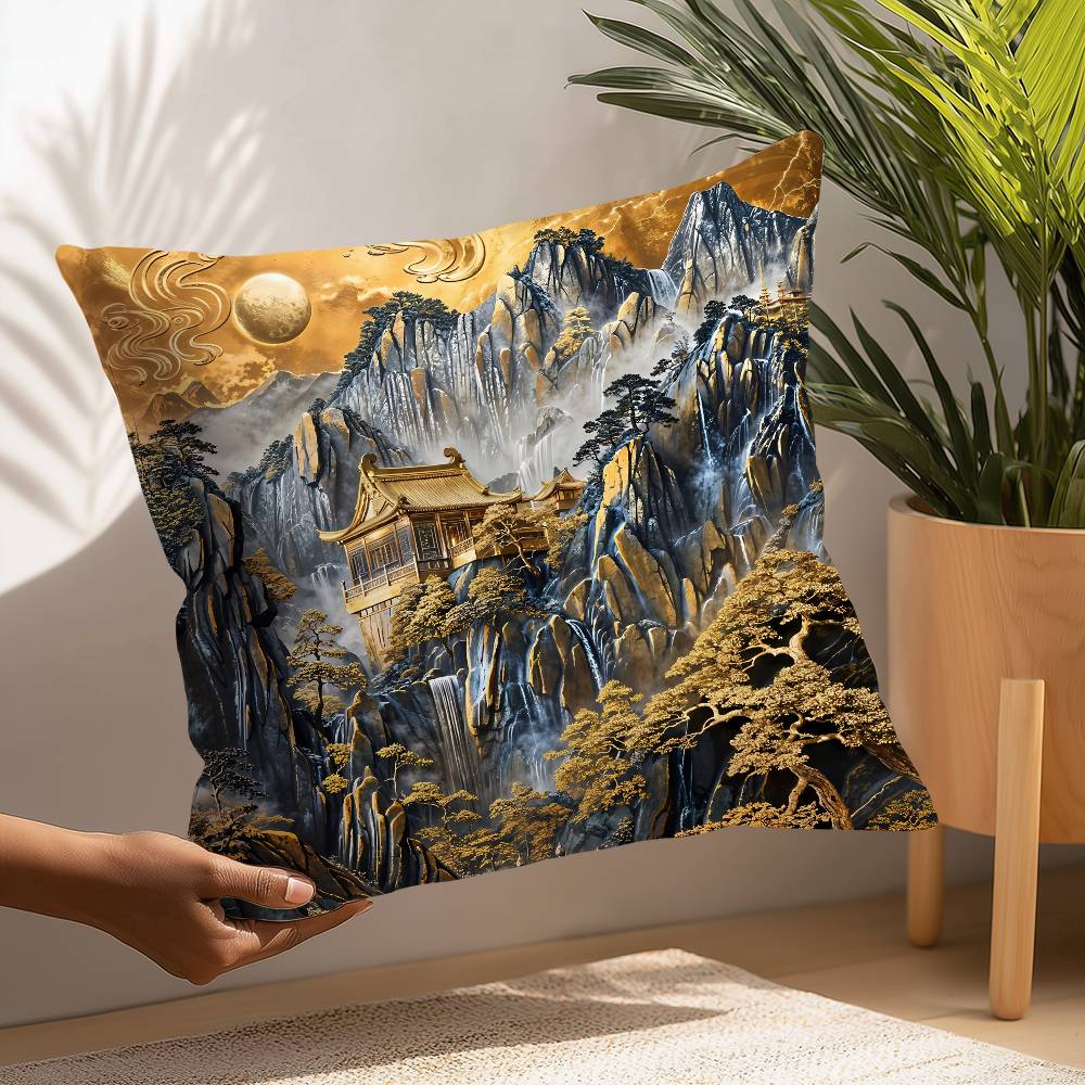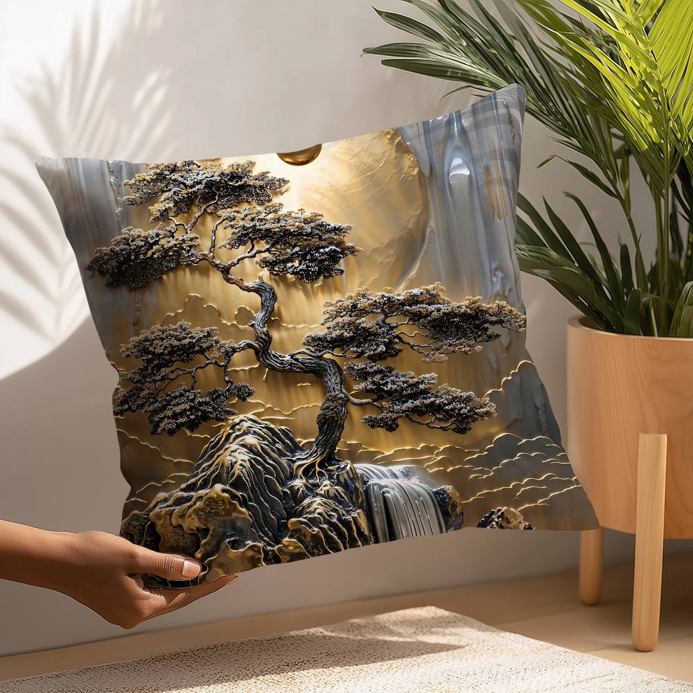 Золотое Дерево и Луна Абстрактная Картина Наволочка Декоративная для Дивана Домашний Двусторонний Принт Короткий Плюш Подушка Чехол для Подушки