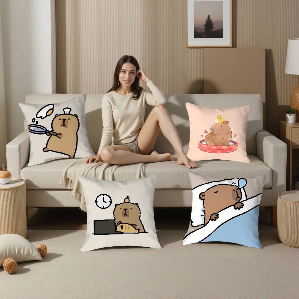 Кавайная наволочка C-КапибараS, плюшевая ткань, мягкая наволочка, двусторонняя печать, наволочка для подушки, бытовые подарки