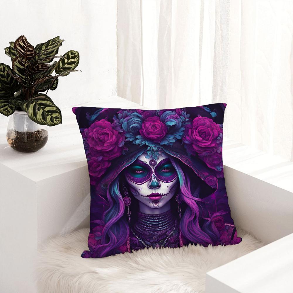 Наволочка Девушка Сахарный Череп Плюшевая Ткань Мягкая Наволочка Двусторонняя Печать Чехол на Подушку Дивана Декоративная Подушка