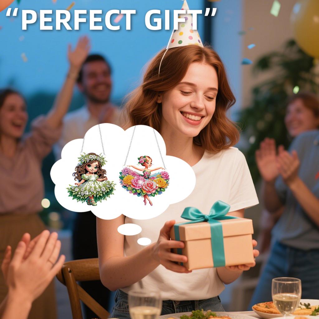 2Pcs Girl Theme 2D/Flat DIY Rhinestone Diamond Art Window Pendants Crystal Painting Ornament Window Hanging Art for Home Decor