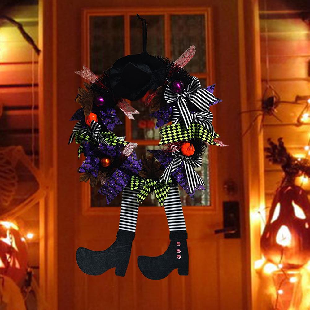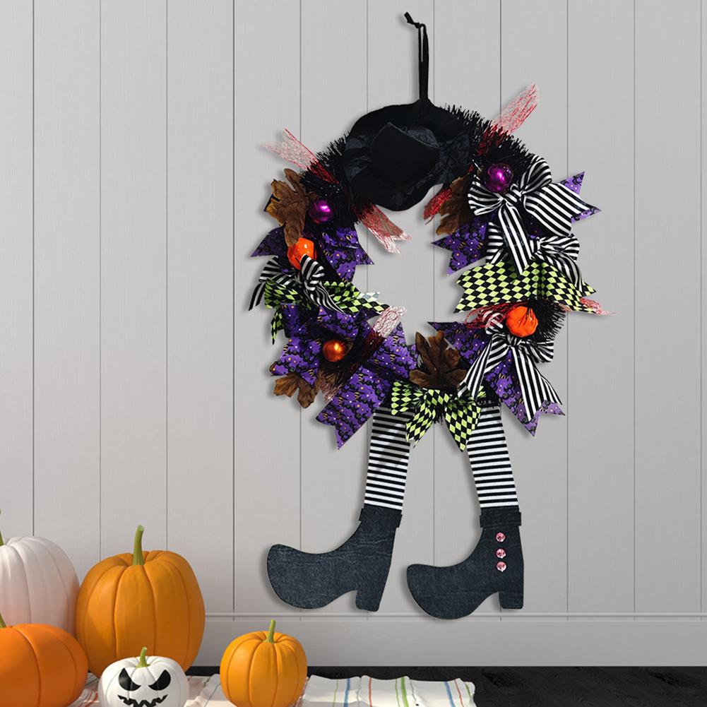 Ведьма Хэллоуин Венок Улучшенная Версия Украшение Ноги Ведьмы Знак Приветствия на Входную Дверь Подвесные Украшения на Хэллоуин для Домашней Вечеринки