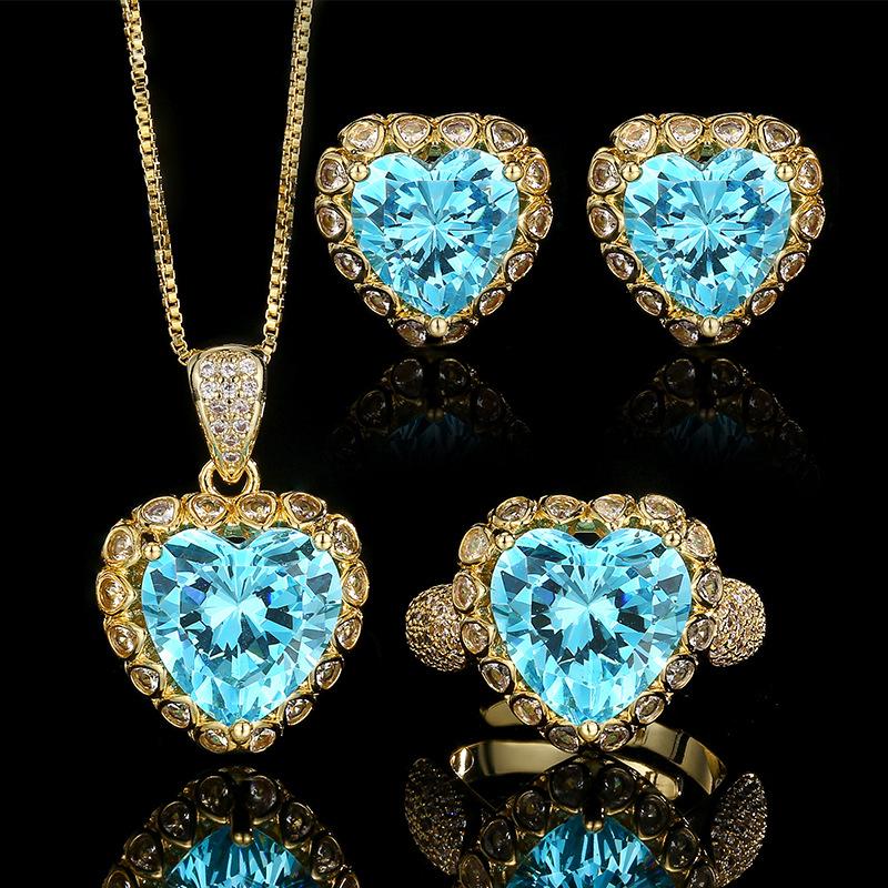 2025 Evening Dress Accessories Multi-Heart Design Blue Red Green High Carbon Diamond Pendant Necklace Earrings Ring Jewelry Set — купить товар онлайн с бесплатной доставкой по всему миру!