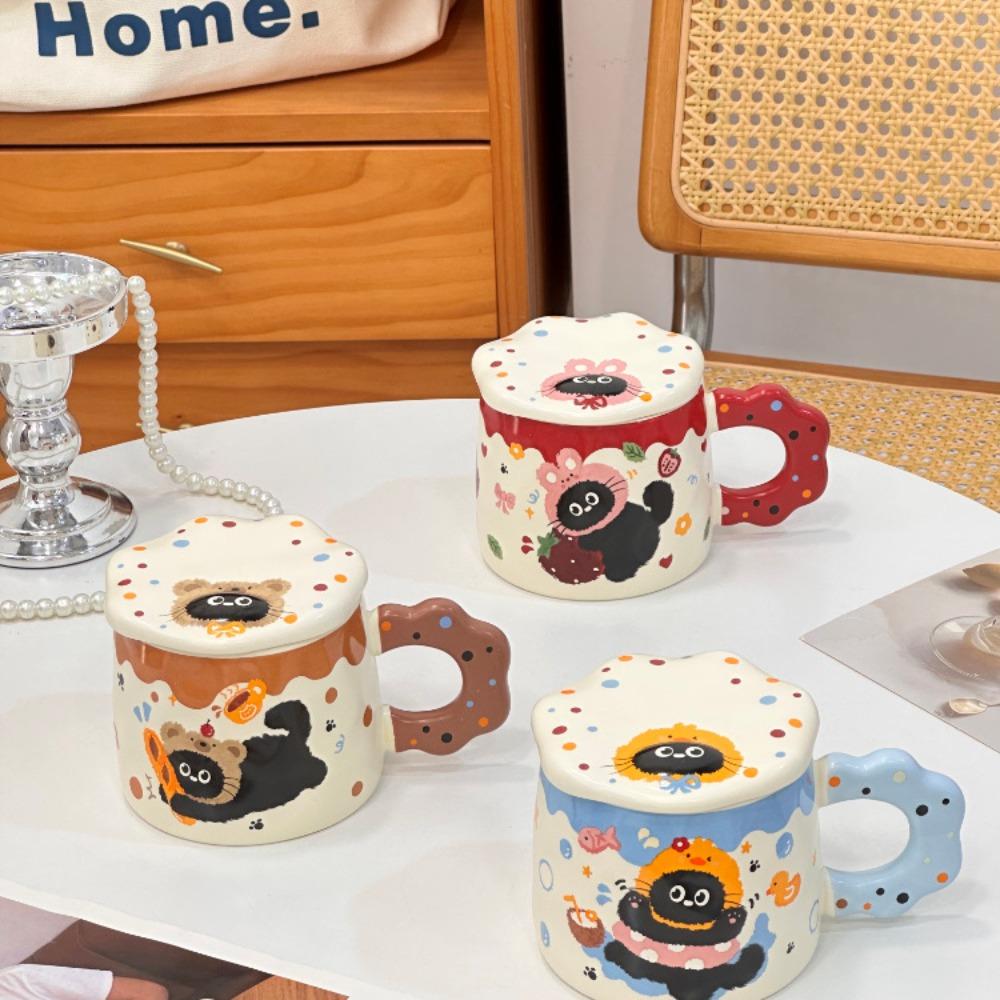 Gifts Birthday Lid Cute Ceramic Breakfast Cup Cat Coffee Cup Cup High Value Mug with Hand