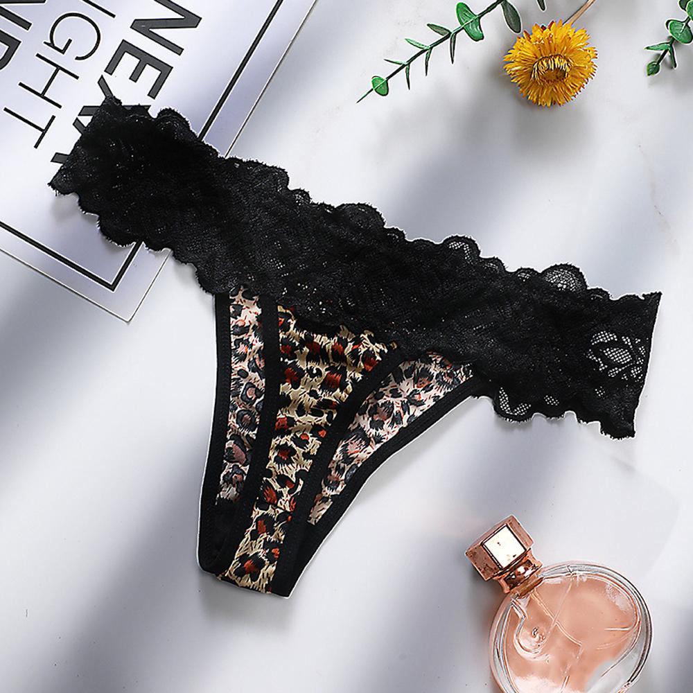 Женские прозрачные трусики-стринги с леопардовым принтом и кружевной отделкой