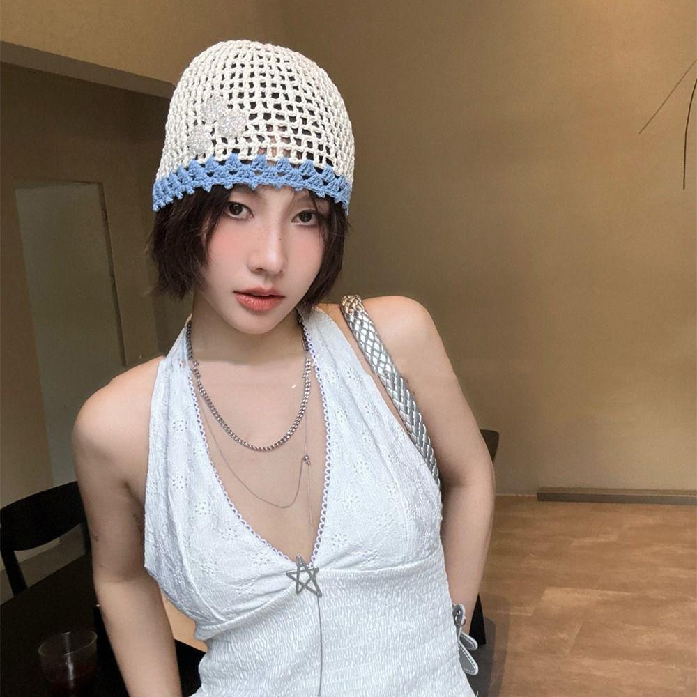 Thin Crochet Flower Hat Handmade Hollow Out Knitted Hat Cute Beanies Hat Apparel Accessories