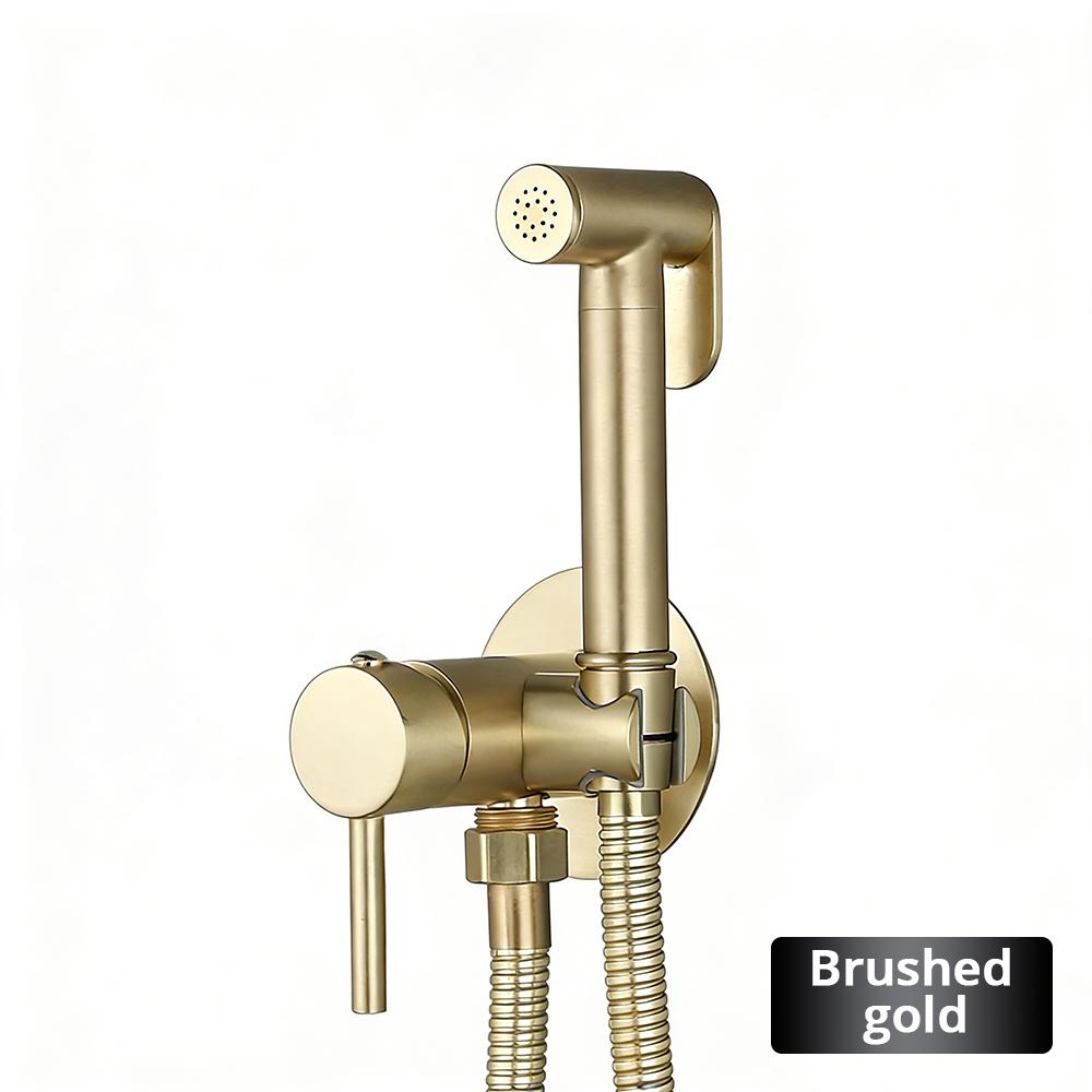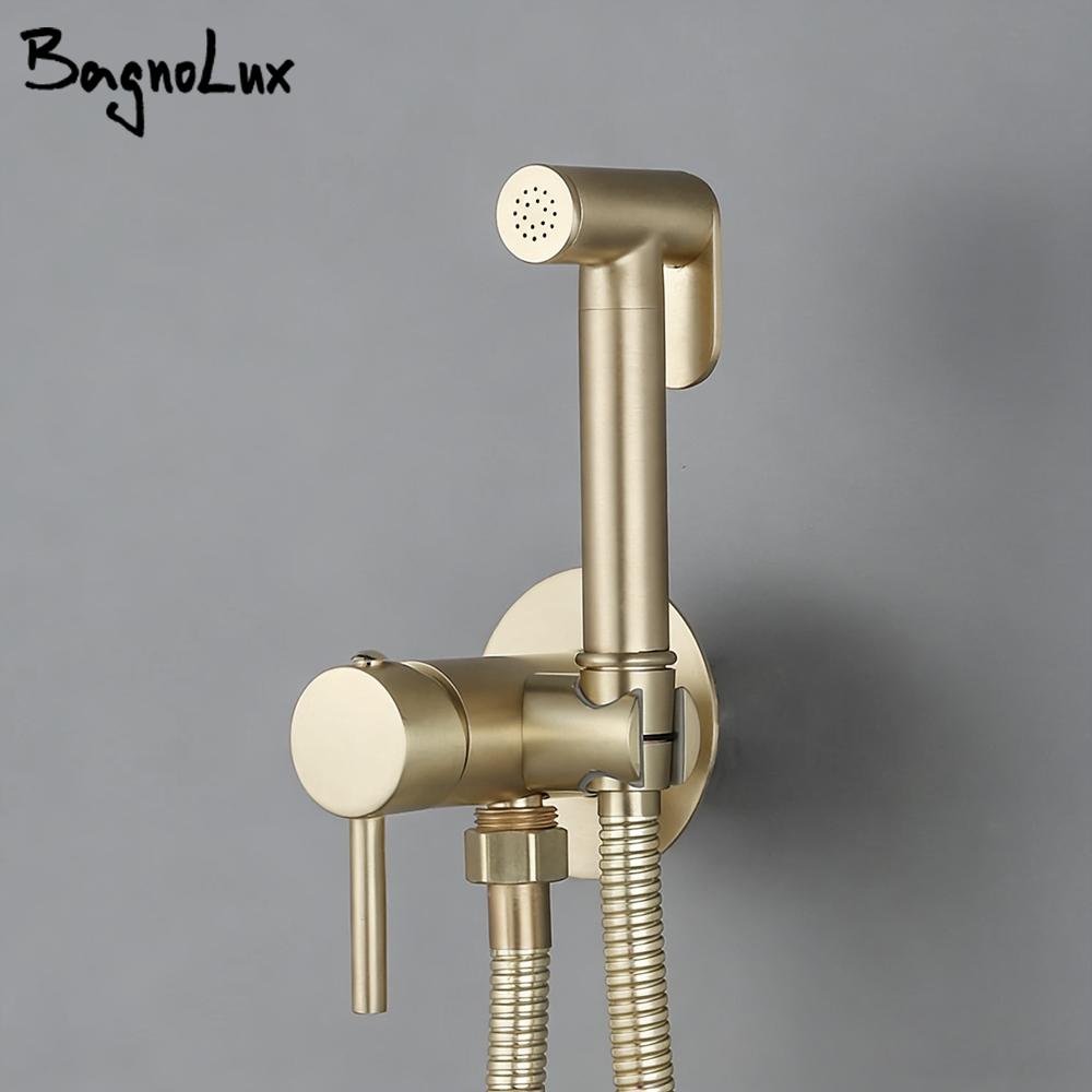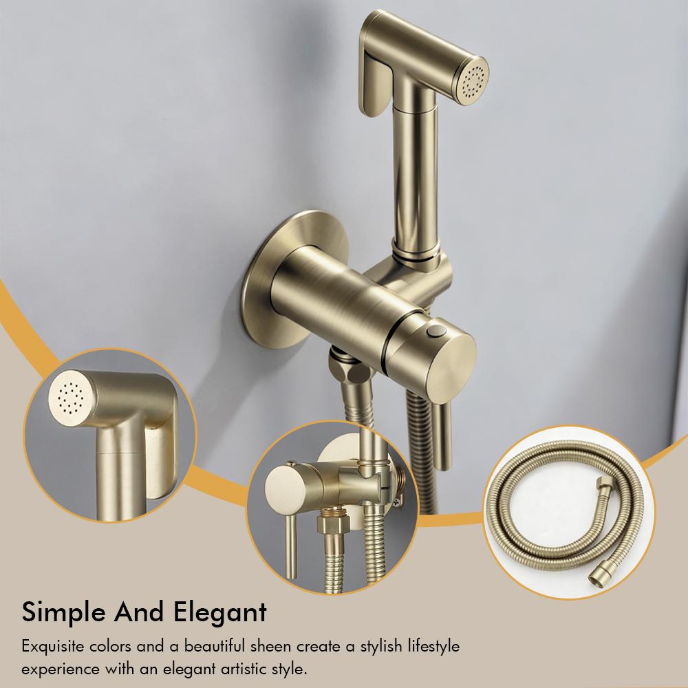 Brushed Gold Brass Hand-held Wall-mounted Bathroom Kitchen Toilet Faucet with Stand Hybrid Hot And Cold Water Bidet Sprayer
