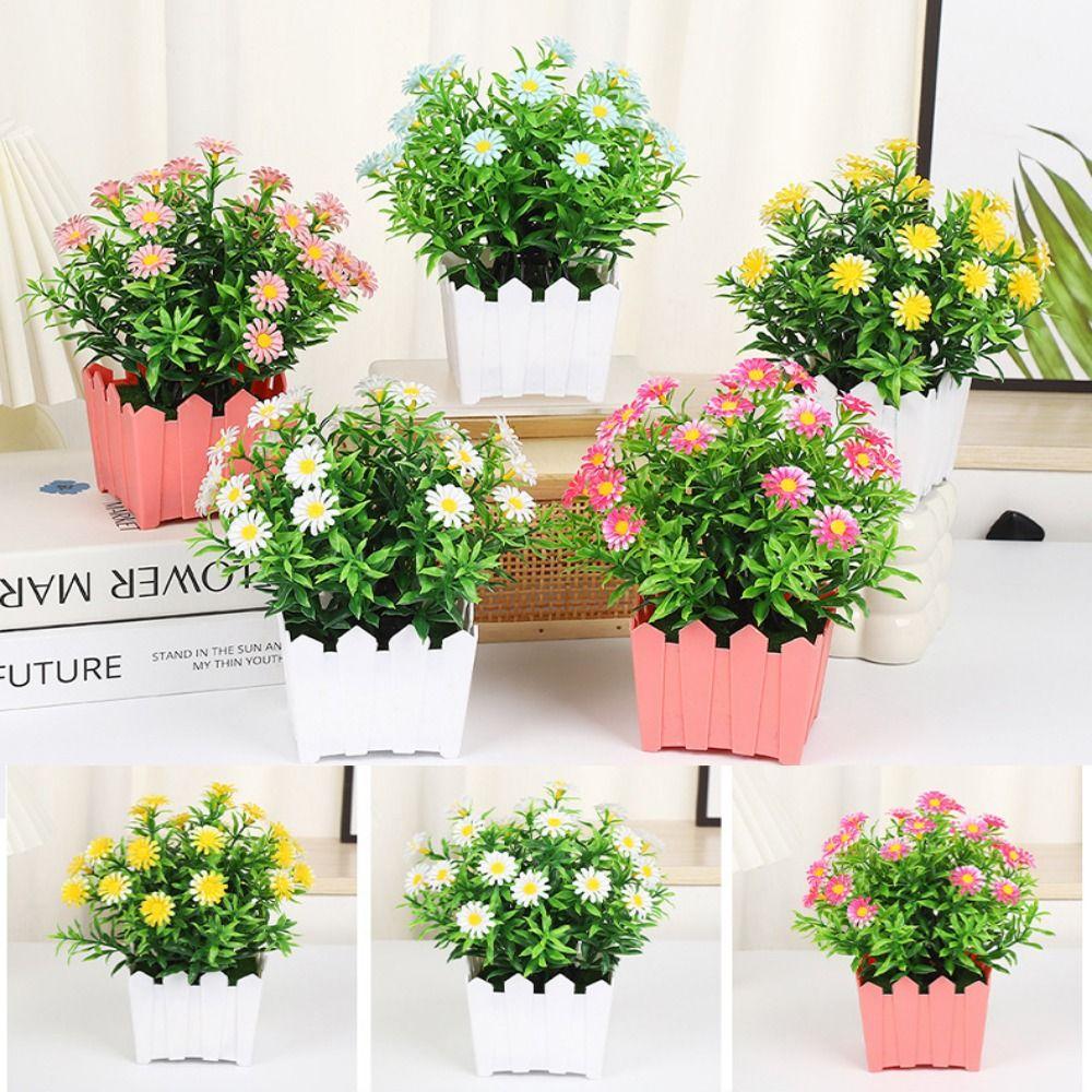 Высококачественный пластиковый искусственный забор из маргариток, маленький подсолнух 18*21см, 5 цветов, искусственный цветок в горшке, набор цветов для забора, домашний декор