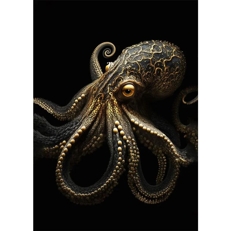 Черное Золото Орел Лев Холст Настенное Искусство - Скандинавский Олень Тигр Волк Лебедь Эстетический Постер для Декора Гостиной Металлическая Картина