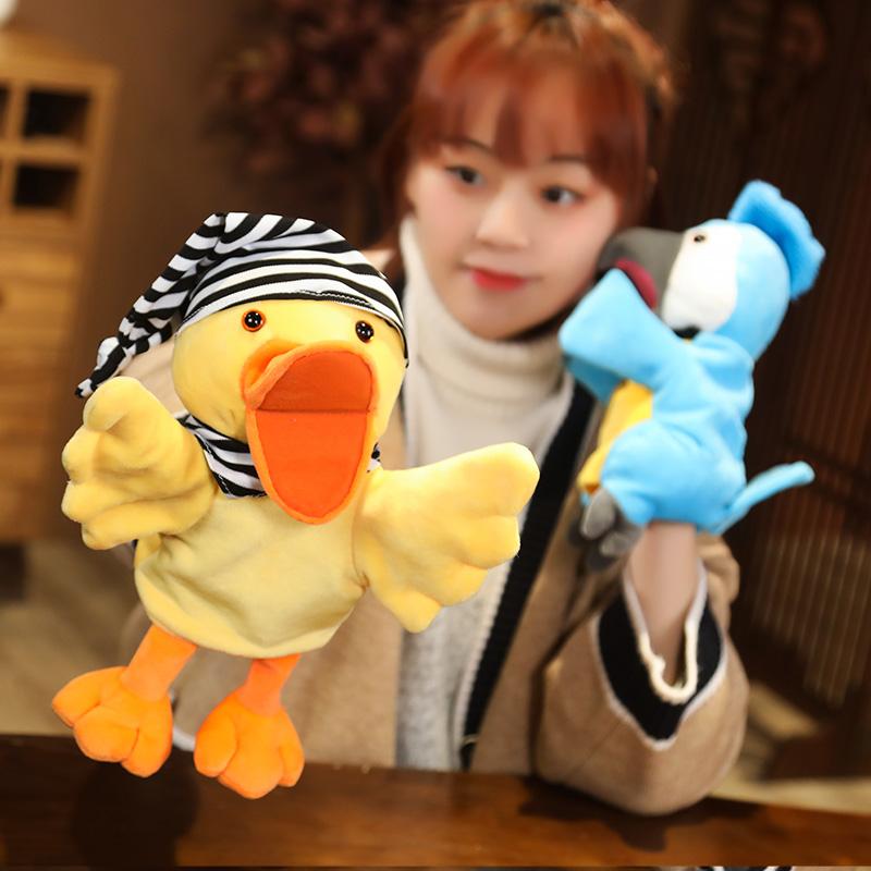 28cm Kawaii Animal Duck Parrot Stuffed Plush Hand Puppets Educational Toys For Family Playgame Time Stuffed Doll