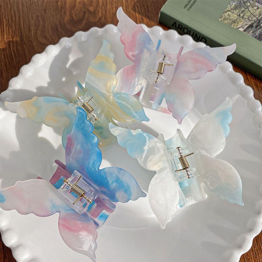Красочная ацетатная заколка-бабочка для волос, меняющая цвет, большая заколка-акула, заколка-бабочка для волос, на каждый день