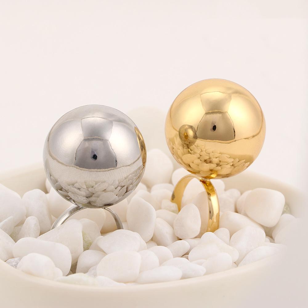 Lovely Silver Adjustable Jewelry Opening Fashion Women Rings Big Metal Balls Female — купить товар онлайн с бесплатной доставкой по всему миру!
