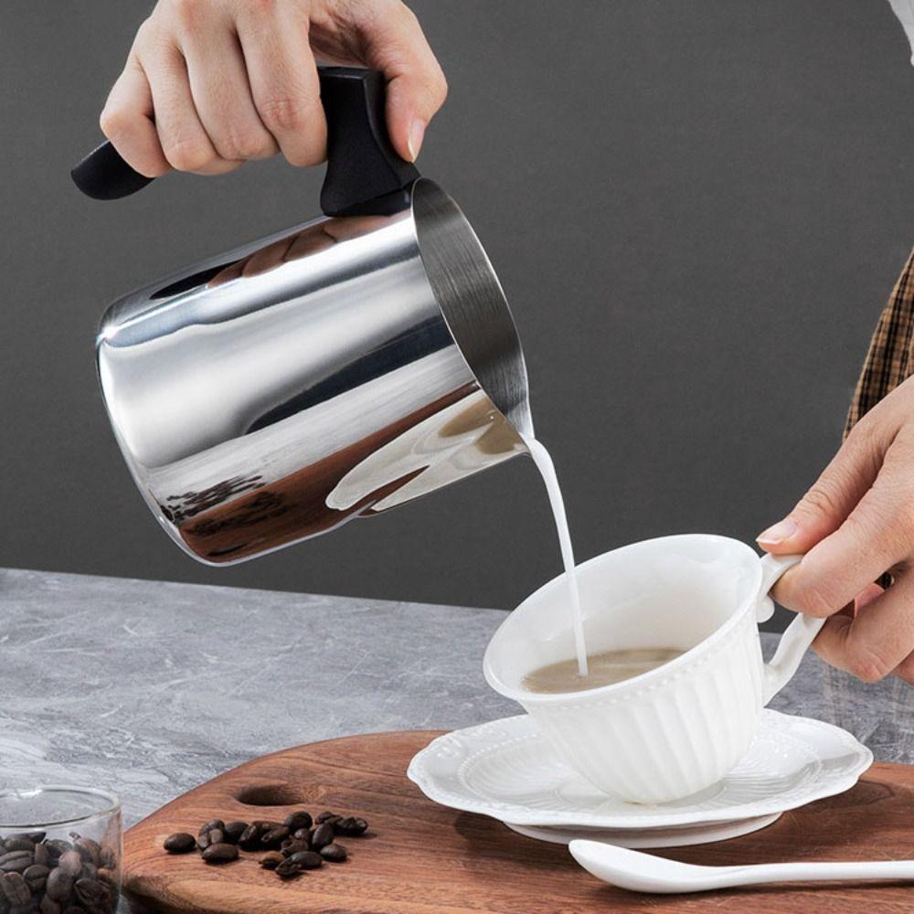 Кружка для латте из нержавеющей стали, ручка против ожогов, кофейник для заливки, кувшин для вспенивания молока, кафе