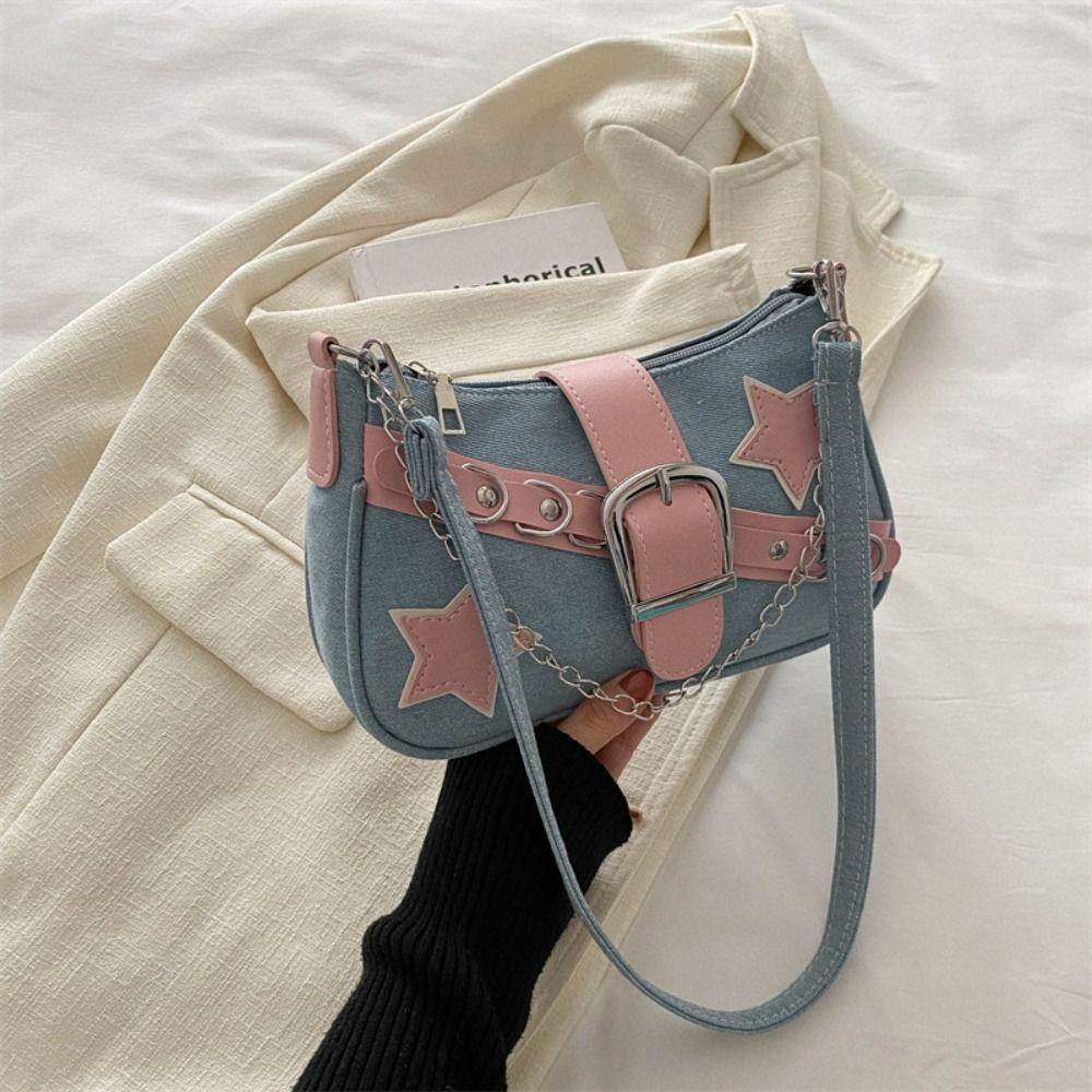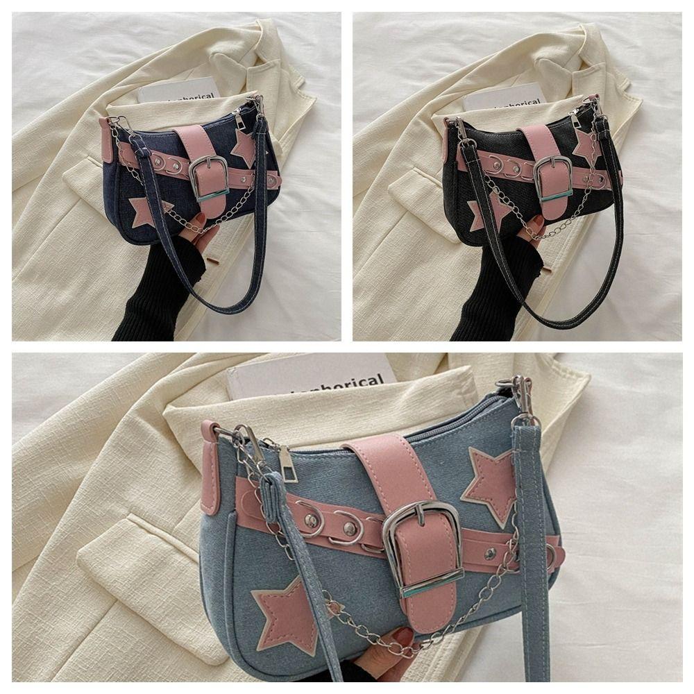 Сумка-тоут в корейском стиле, на плечо, дамская, джинсовая, повседневная, Y2k, подмышечная, для путешествий