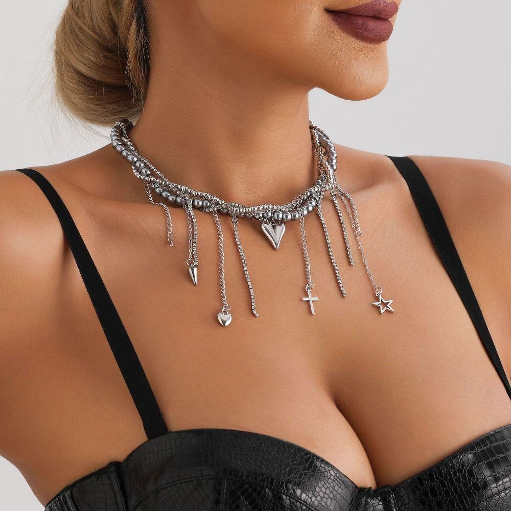 Punk Multilayer Tassel Necklace Metal Chain Goth Style Necklace Jewelry Gift