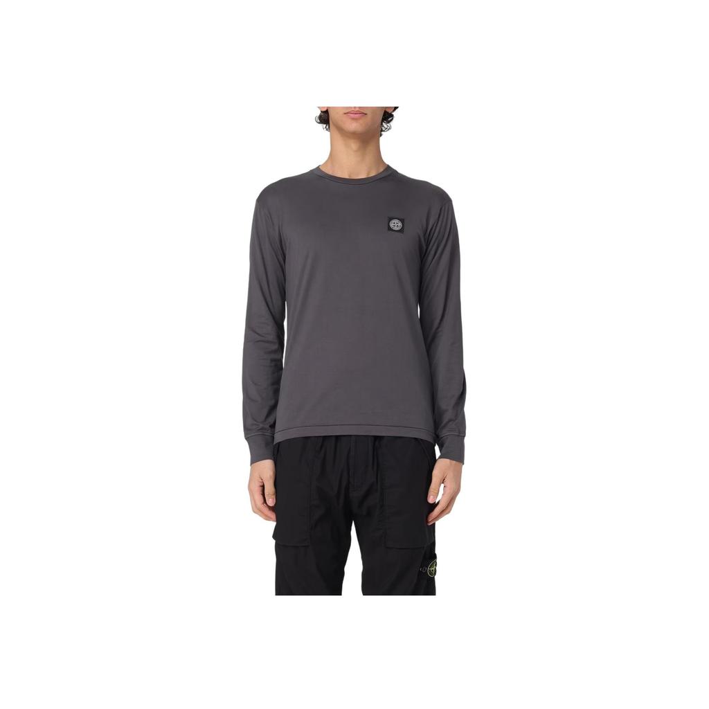 STONE ISLAND Логотип Футболка с длинным рукавом и круглым вырезом облегающего кроя Мужские топы Серый K1S152100227S0013-V0065