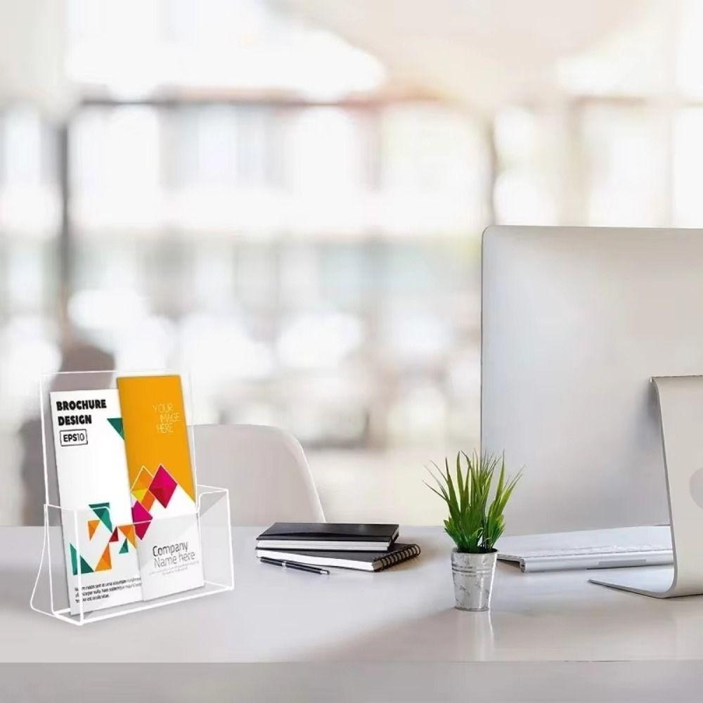 [Гуманизированный дизайн]: Этот прозрачный держатель для брошюр имеет наклонную заднюю часть, устойчив и не упадет легко.. Большое отверстие легко установить и получить доступ.